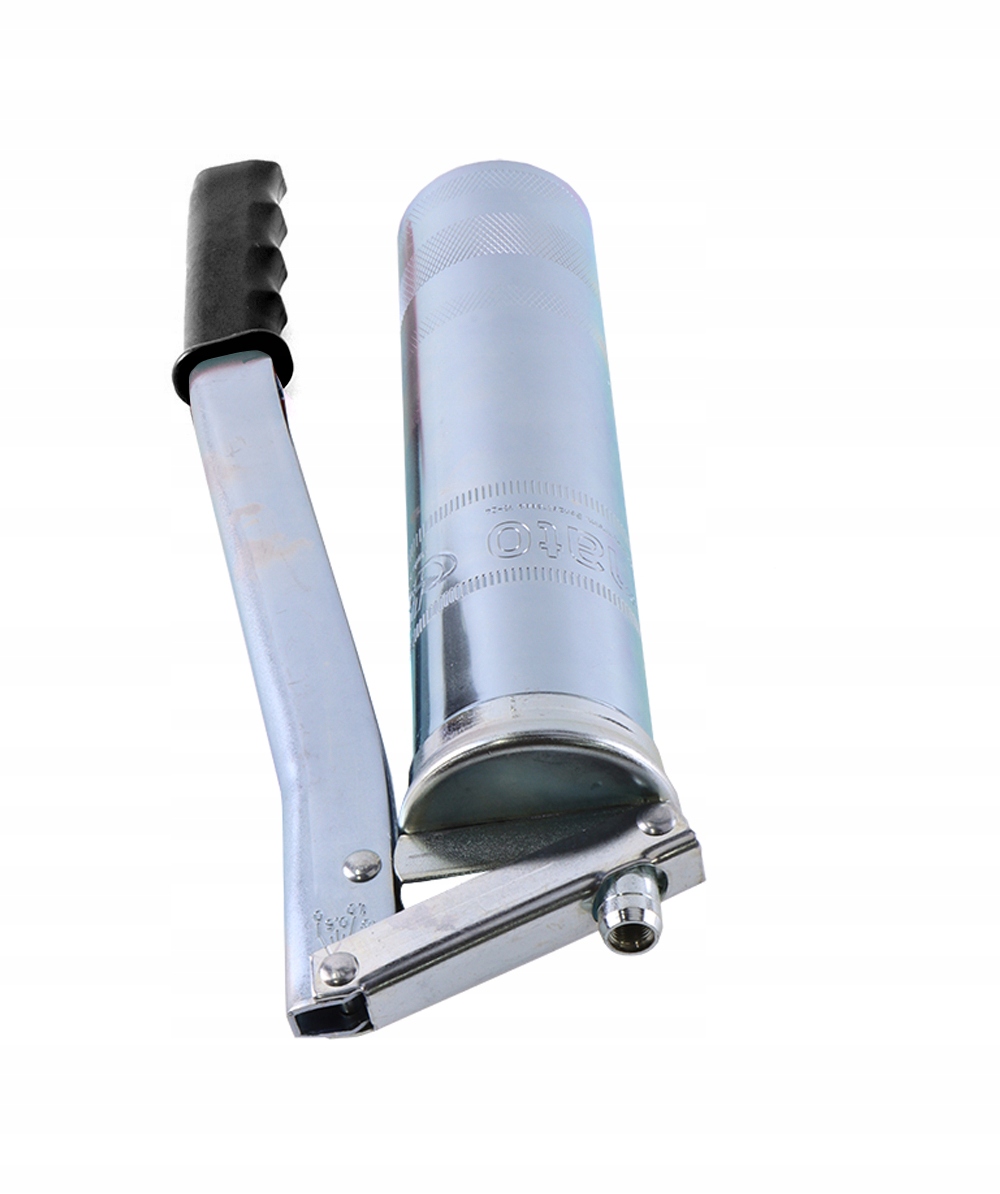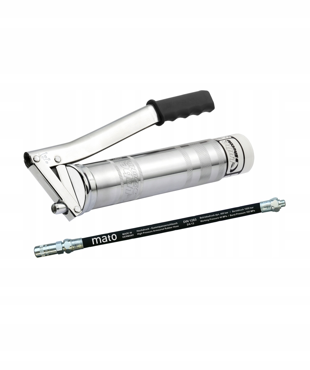 Ручная смазка для картриджей системы смазки-Shuttle® с оцинкованной стальной головкой, эргономической ручкой, рабочее давление 400 бар, максимальное давление до 800 бар, сертифицированное Tüv, Dlg, Blt. Смажный шаттл ™ с 300 мл RH -3 -резиновым шлаком безопасности (стельки со стальной косичкой, давление в пешеходном дне 1650, Ø - 13 мм) и гидравлическое сопло с 4 челюстями R1/8 ".