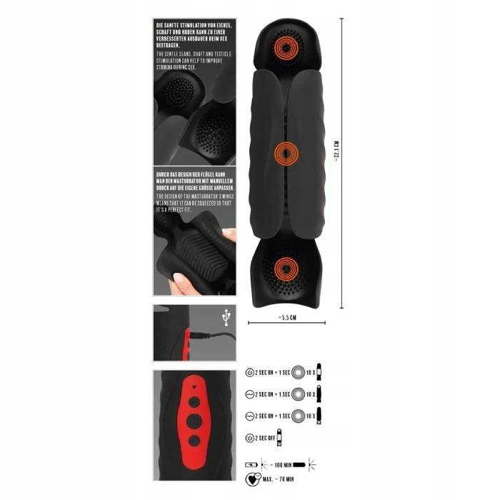 Он балует пенис от кончика до мошонки и тренирует его на самом высоком уровне, чтобы получить больше силы, выносливости и научить контролировать момент эякуляции. Ощущения очень интенсивные в различных сегментах головки полового члена, тела и яичек. Каждая зона мастурбатора имеет разную конструкцию и оснащена мощным вибромотором, которым можно управлять в 10 режимах. Например, вы можете мягко стимулировать головку полового члена, вызывая при этом ощущение покалывания в стволе, но не забывайте о яичках. Гибкая конструкция крыла также идеально подходит для лечения эректильной дисфункции. Пенис просто помещается между крыльями, и тут начинается самое интересное. Благодаря своему удобному и легкому весу мастурбатор также можно прекрасно использовать в прелюдии, так что вы сможете приступить к делу еще быстрее.