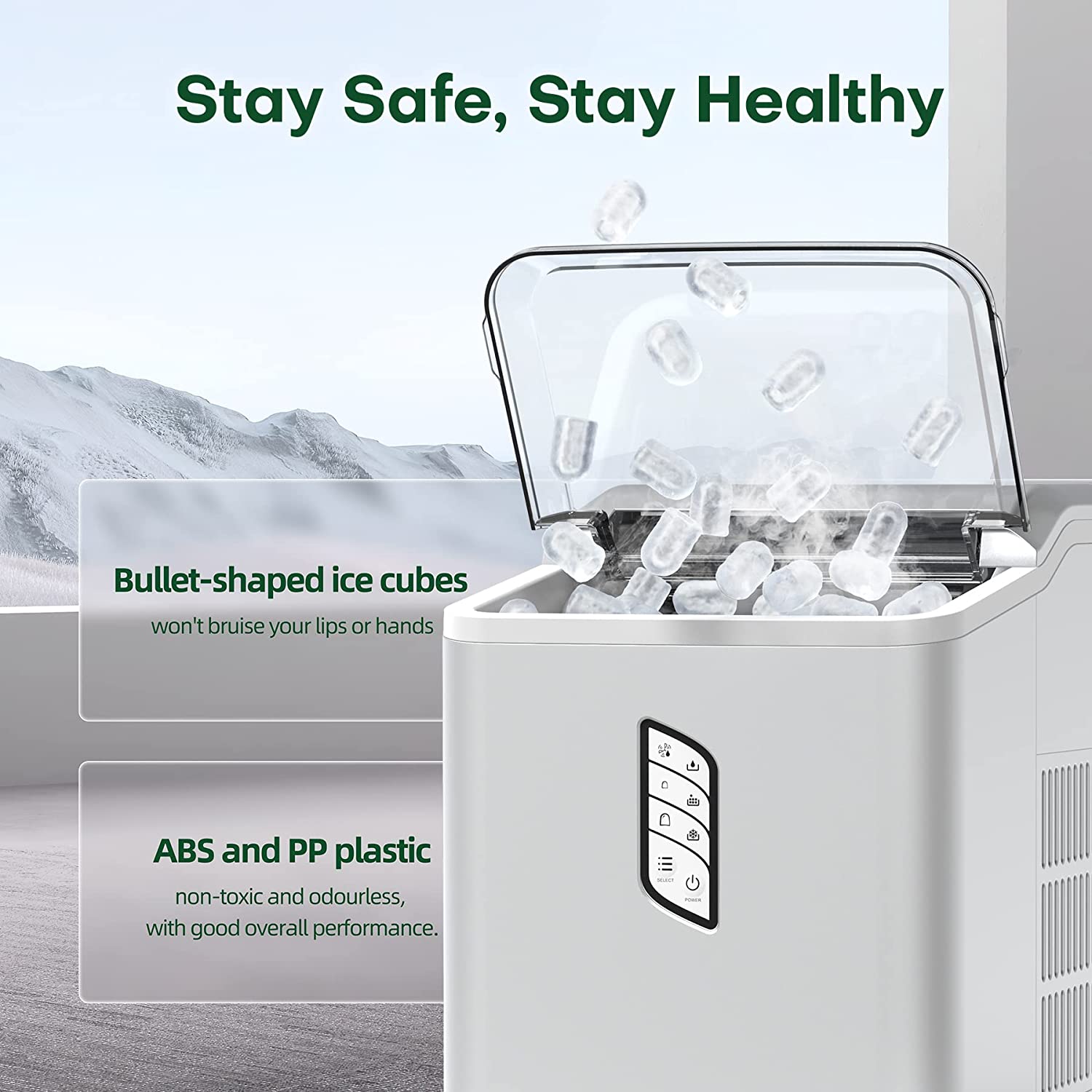 ✔️Индикатор полного льда предупреждает вас, когда корзина заполнена, а индикатор нехватки воды сообщает, когда нужно добавить воду.