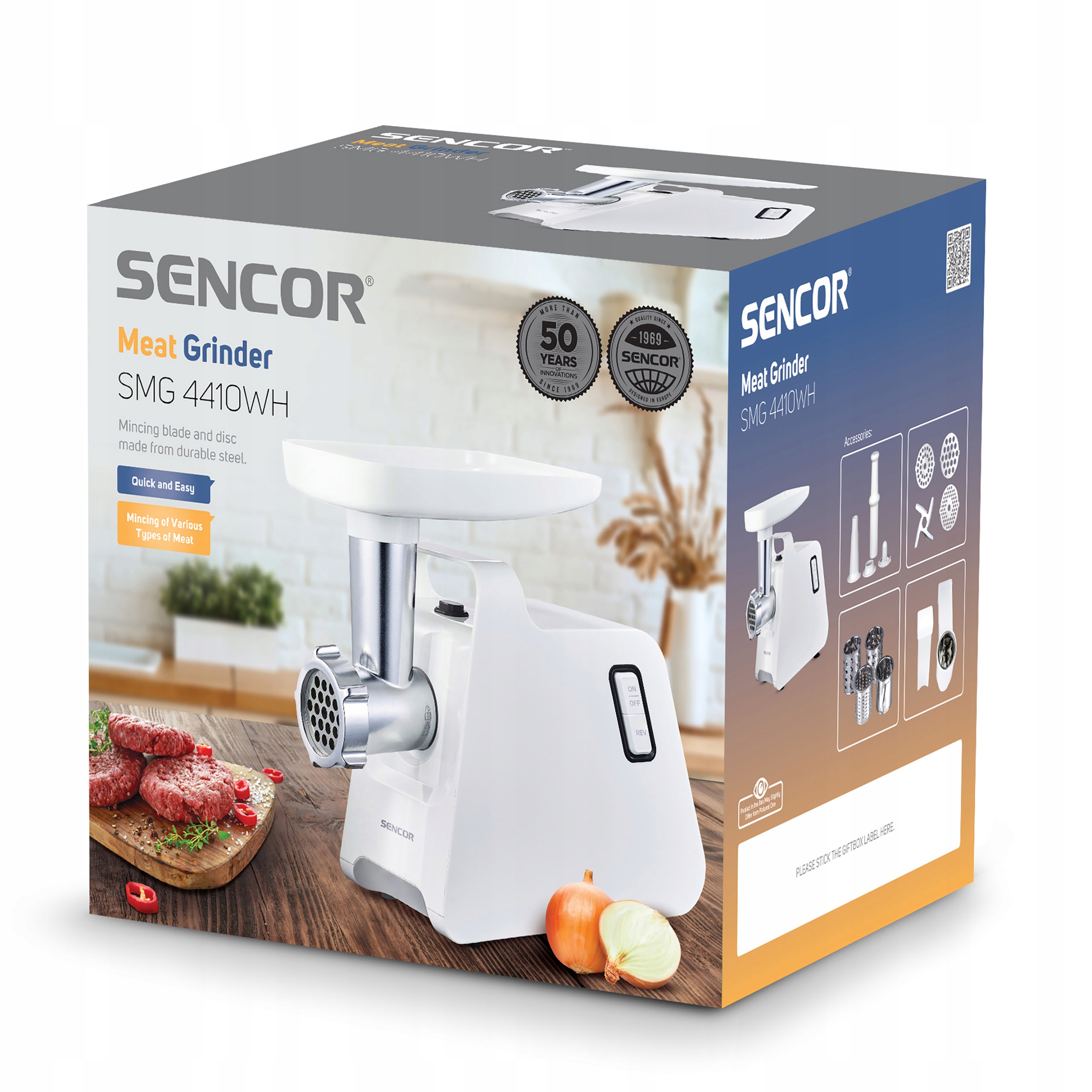 Sencor SMG 4410WH — незаменимая мясорубка, сочетающая в себе высокую производительность, универсальные функции и прочную конструкцию. Представляя новый стандарт на кухне, эта мясорубка предлагает не только исключительную мощность и производительность, но и множество дополнительных функций, которые позволяют готовить свежее мясо и консервы удобным и профессиональным способом.