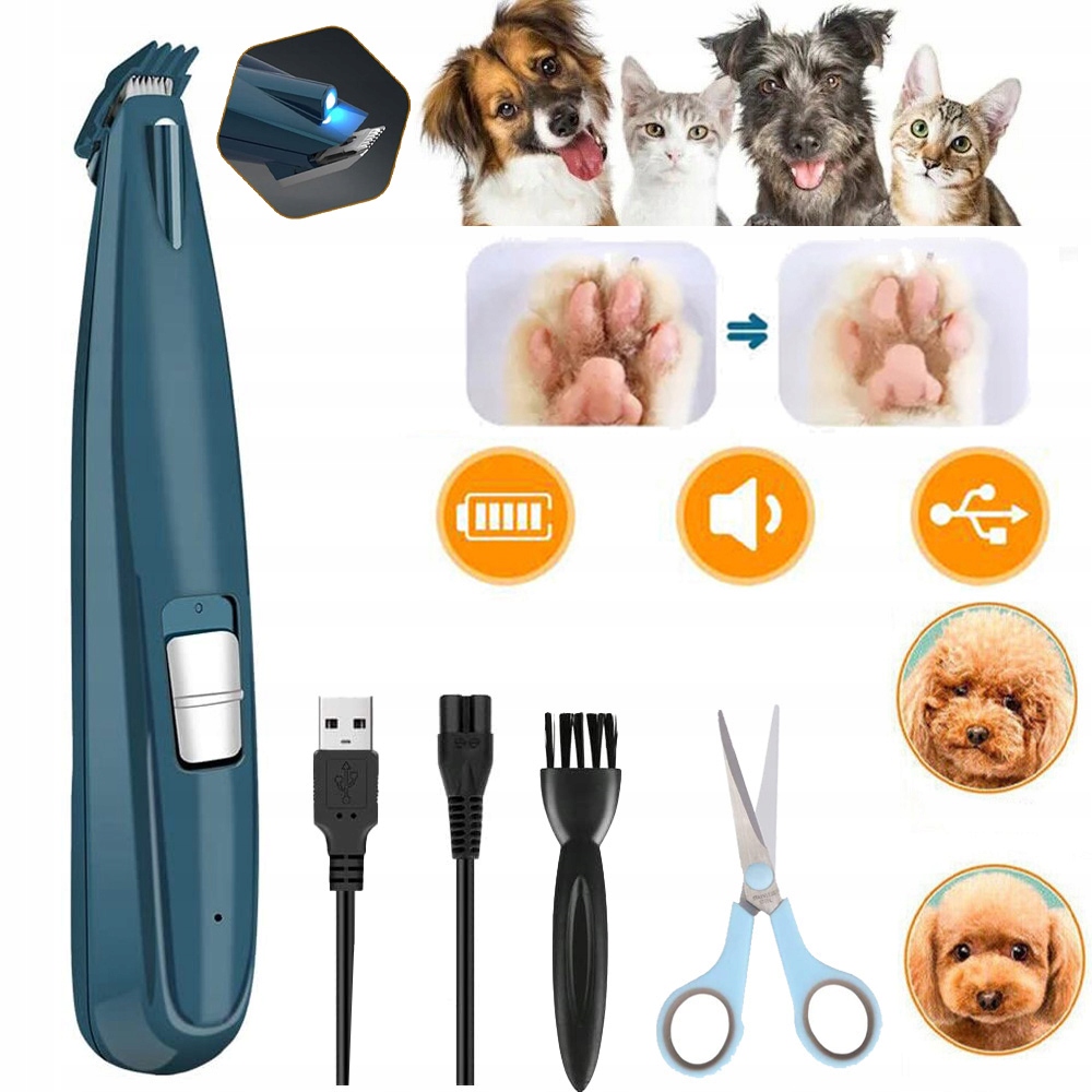 MASZYNKA DO STRZYŻENIA PSÓW, BEZPRZEWODOWY TRYMER DO ŁAP Z OŚWIETLENIEM LED
