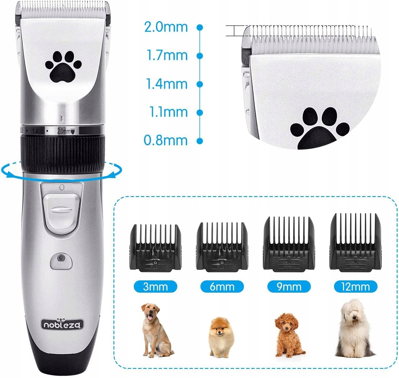 Машинка для стрижки шерсти для собак работает без проводов, от перезаряжаемой батареи, которой хватает на более 3 часов, она очень тихая, профессиональная и практичная, имеет минимальную вибрацию и низкий уровень шума менее 60 дБ, поэтому не подвергает опасности ваши волосы. погладьте животное или вообще помогите ему чувствовать себя комфортно во время стрижки.