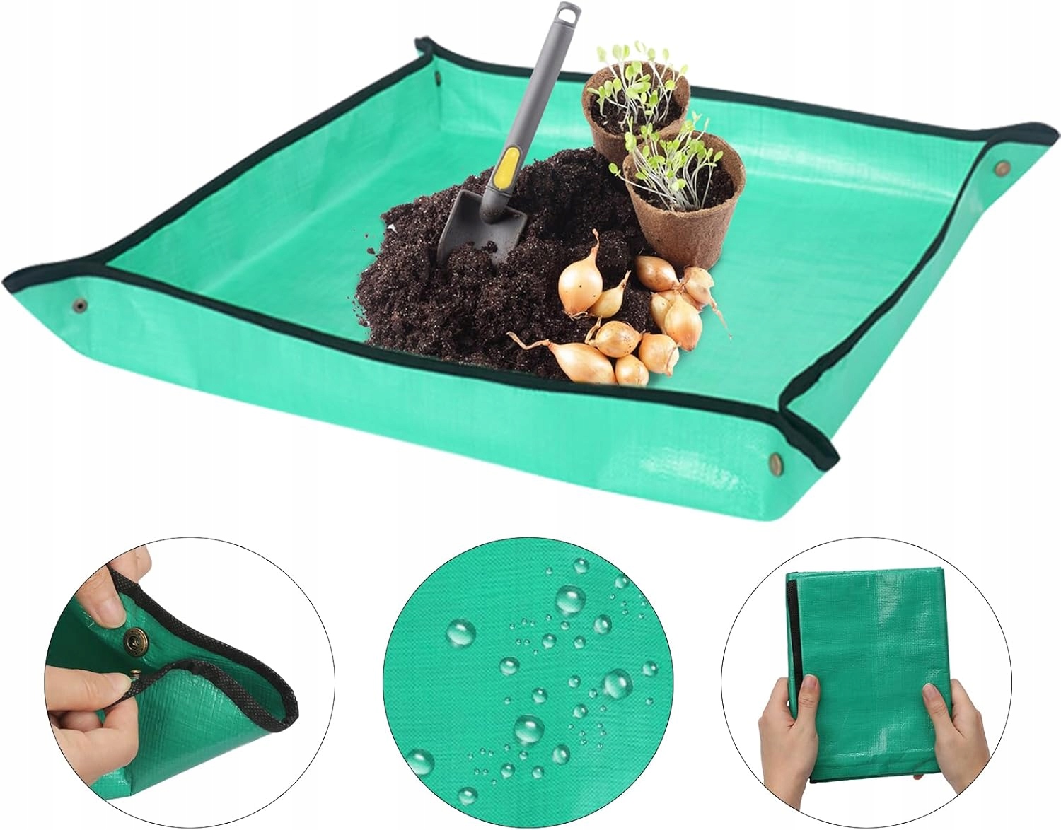 Большая площадь 100x100 см (после закрепления защелки 80x80 см) позволяет легко пересаживать даже многие растения сразу. Материал , через который вода не впитывается, он позволяет легко держать коврик в чистоте, просто промыть его под водой.