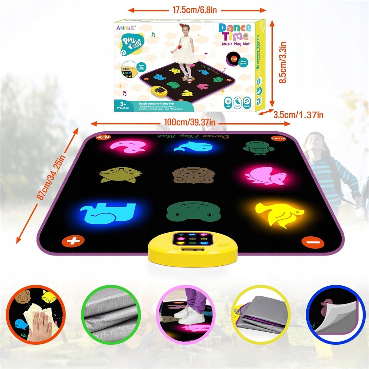 - Улучшение Сияющий танцевальный мат имеет 5 интерактивных игровых режимов и 3 уровня сложности. Простые слои и умеренные ритмы заставят вашего ребенка любить танцевать и движение. Пусть ваши дети практикуются самым забавным и интерактивным способом. Дети будут наслаждаться музыкой и спортом. Музыка может развивать мозговую силу вашего ребенка, память, уверенность в себе,