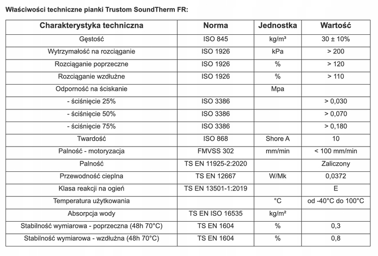 - Используемая технология FR (огнестойкая) защищает Trustom SoundTherm FR образует пену, препятствующую быстрому распространению огня в случае пожара.