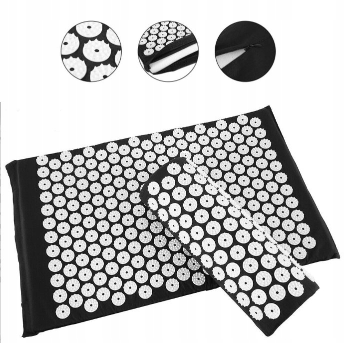 Размер подушки: 66 x 40 x 2 см (длина x ширина x высота). Подушка: 38 x 16 x 10 см (длина x глубина x высота). Коврик и подушку можно легко переносить и хранить в мешке шиатов.