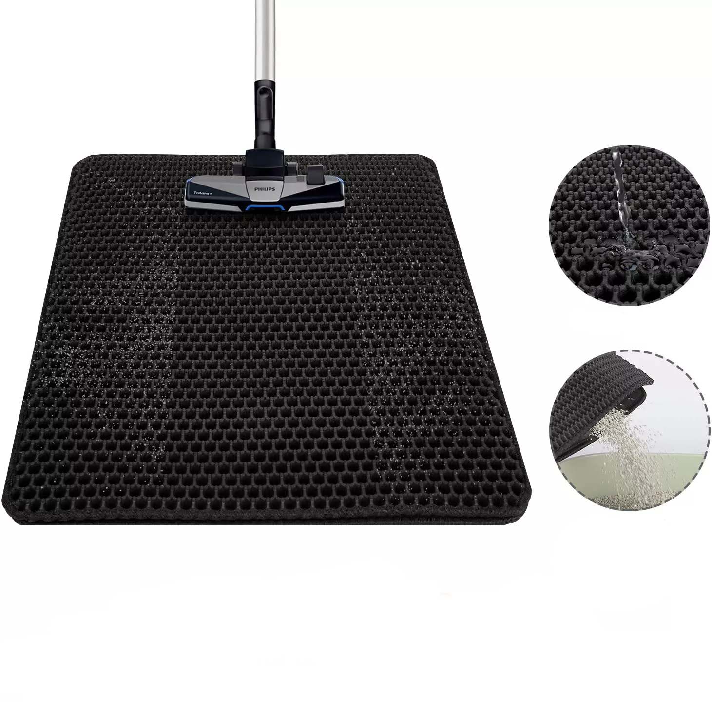 Коврик имеетспециальные отверстия, которые впитывают наполнитель после каждого использования кошкой туалетного лотка, благодаря чему наполнитель не будет растекаться по всему туалету. вся квартира. Коврик для туалетного лотка имеет гладкую поверхность и его очень легко чистить. Все, что вам нужно сделать, это поднять первый слой и высыпать гравий. Кроме того, коврик очень легок и удобен в переноске.