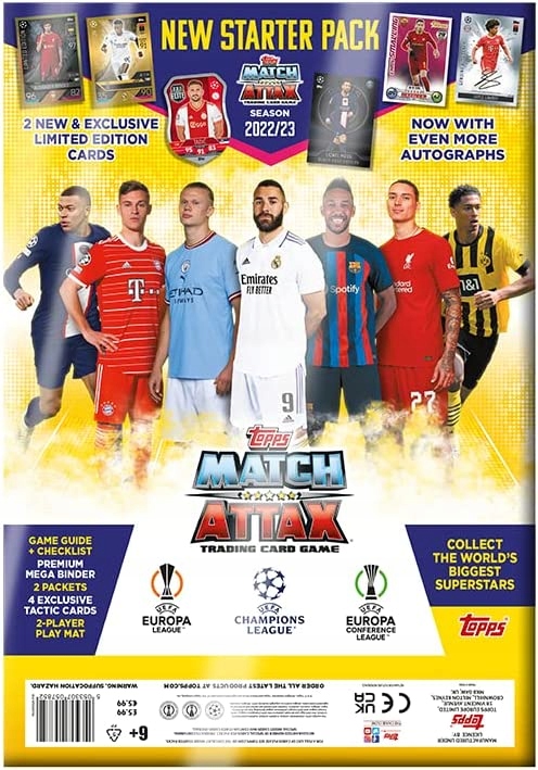 НОВАЯ коллекция Match Attax 2022/2023 стала больше и лучше, чем когда-либо! Attax матчей Лиги чемпионов УЕФА возвращается с еще одним захватывающим сезоном футбольных соревнований. В коллекции этого года можно собрать 540 карт, включая ограниченные карты с автографами игроков, карты Black Edge Edition, Genuine Autograph, Relic, Pro-Elite Chrome Shield, Crystal Parallels и карты Chrome Preview. >
