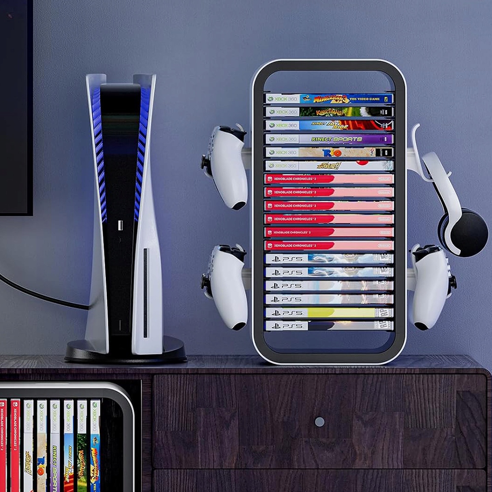 📦 Емкость для 18 дисков — Никакого беспорядка Вмещает до 18 игровых дисков — больше не нужны стопки, чтобы найти любимую игру. Он поддерживает порядок в вашей игровой комнате или подставке под телевизор, а вся ваша коллекция всегда под рукой.