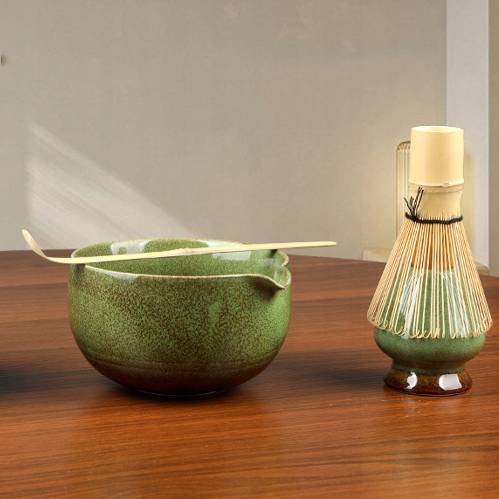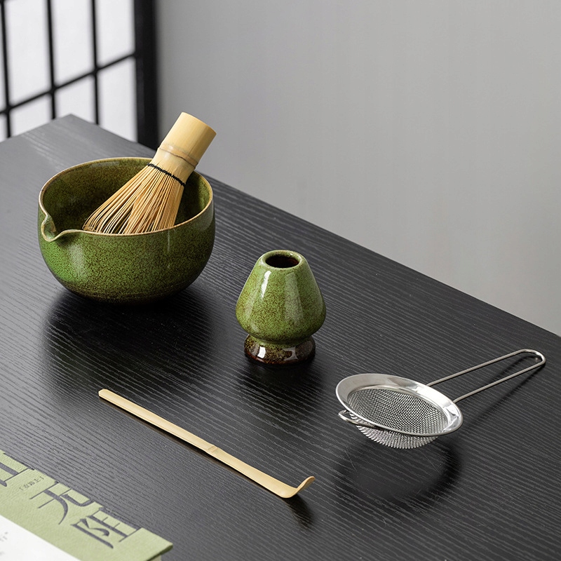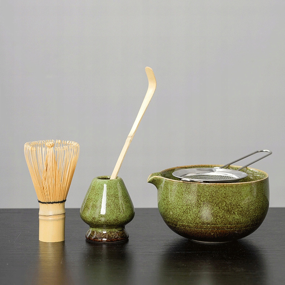 ▶️▶️НАБОР ЧАЯ МАТЧА, НАБОР ИЗ 5 ПРЕДМЕТОВ: БАМБУКОВАЯ МЕТЛА И ЛОПАТА МАТЧА, КЕРАМИЧЕСКАЯ ЧАШКА МАТЧА И ДЕРЖАТЕЛЬ ДЛЯ МЕТТЫ И СИТО ИЗ НЕРЖАВЕЮЩЕЙ СТАЛИ, РУЧНАЯ РАБОТА (ЛЕСНАЯ) ЗЕЛЕНЫЙ)◀️◀️