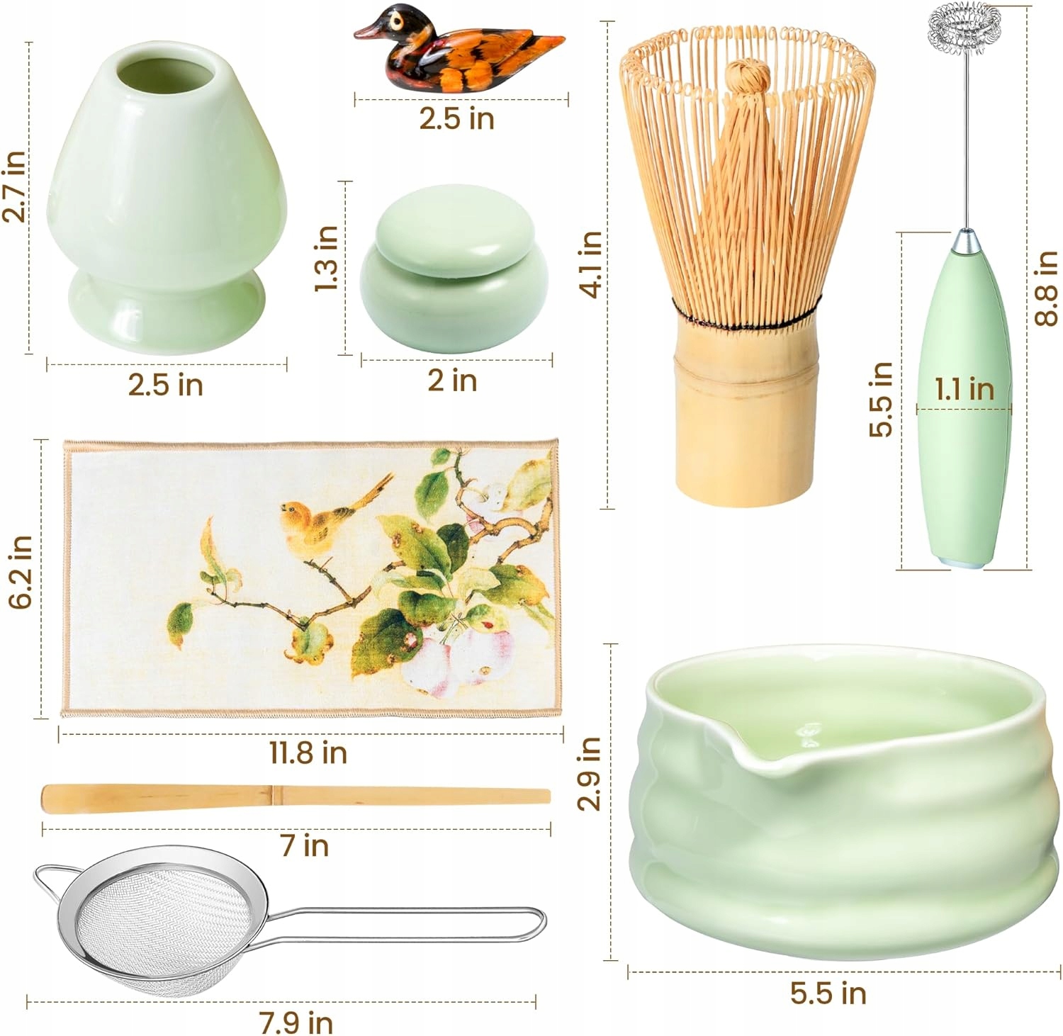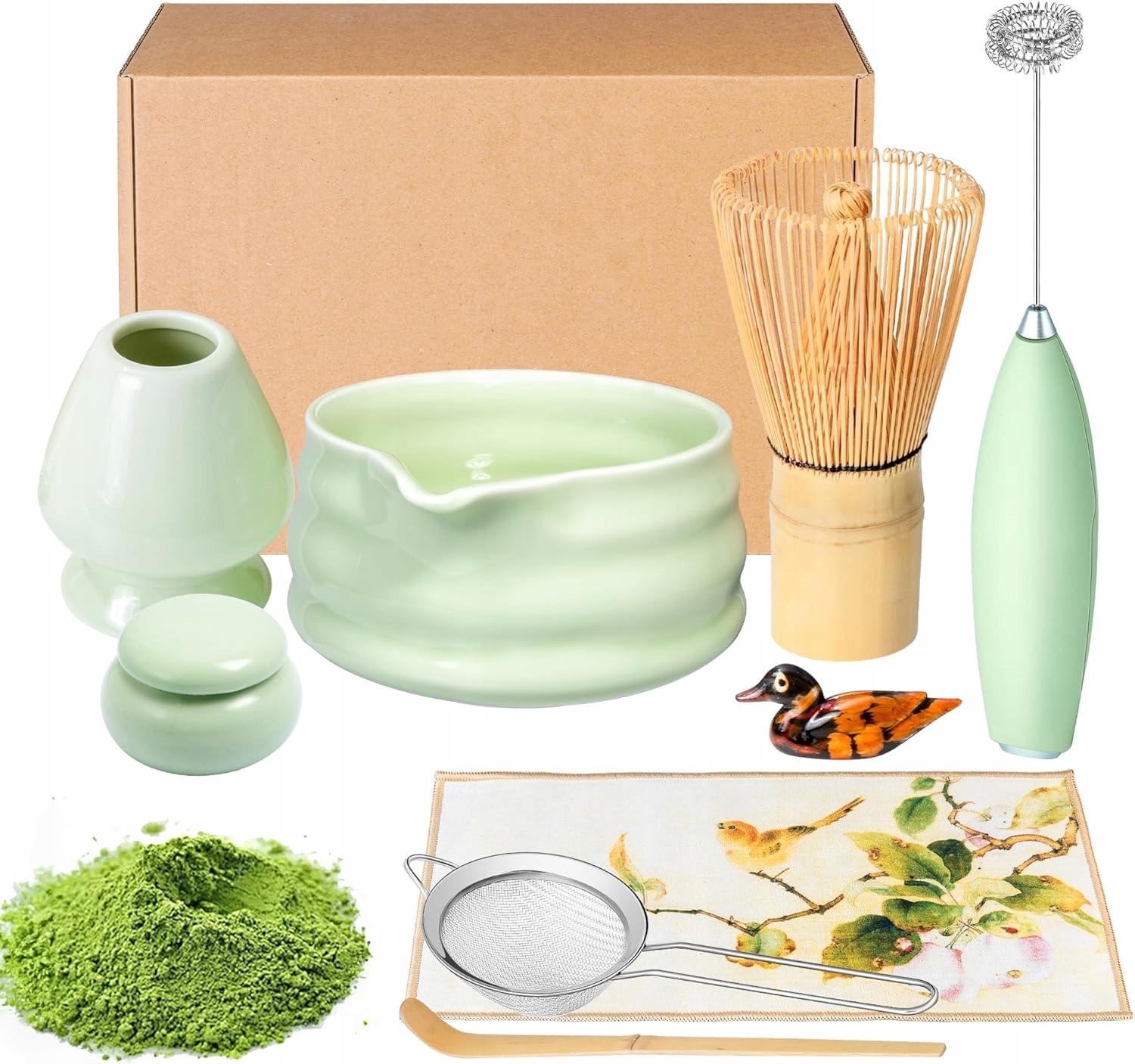 🧩 🧩 набор чая матча с бамбуком, керамическим инструментом для матча с венчиком/ложкой/ситом/ручкой/чашами/банка/падкой/промежутка/миксером/сито