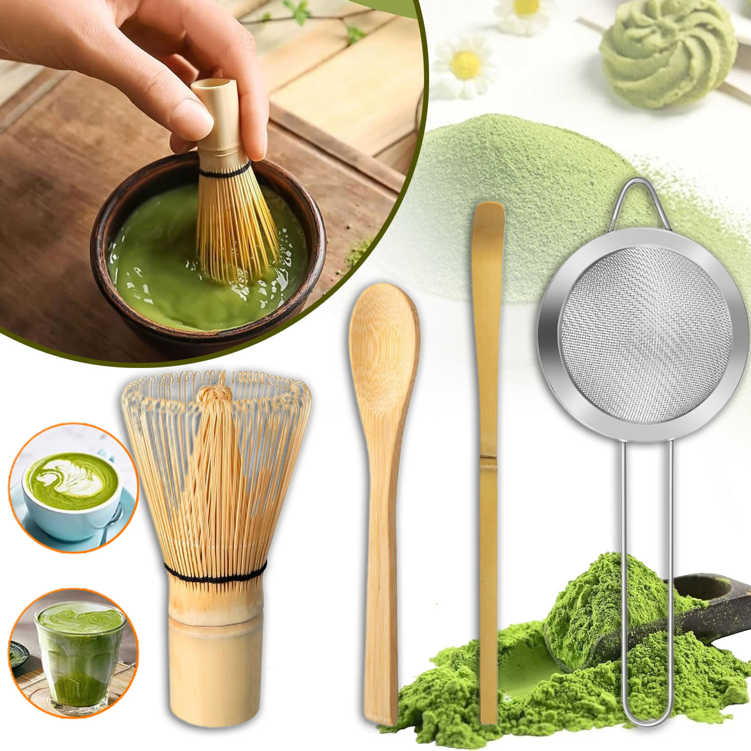 -matcharder, ложка и мешалка изготовлены из естественного бамбука и сито из нержавеющей стали, которое является безопасным, экологически чистым, твердым и долговечным. Новички или просто для личного использования!