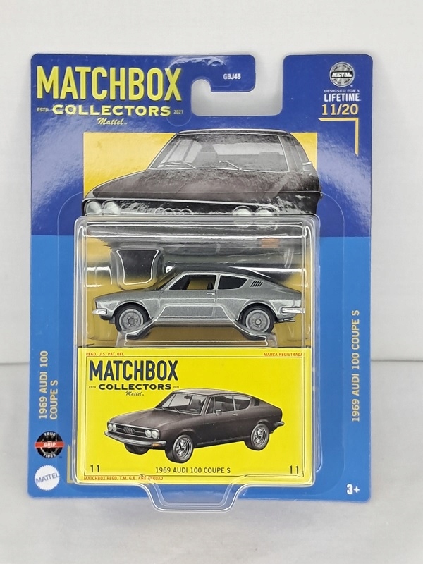 Audi 100 Coupe S 1969 года, серебристая модель от Matchbox в масштабе 1:64, серия Matchbox Collectors. Новое