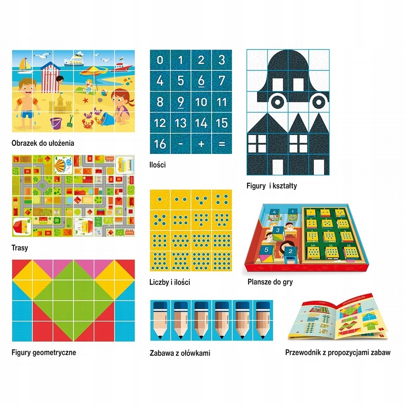 Стимулирует наблюдательность, учит детей считать и сопоставлять числа и размера, решения первых уравнений и изменения композиции изображений и путей.