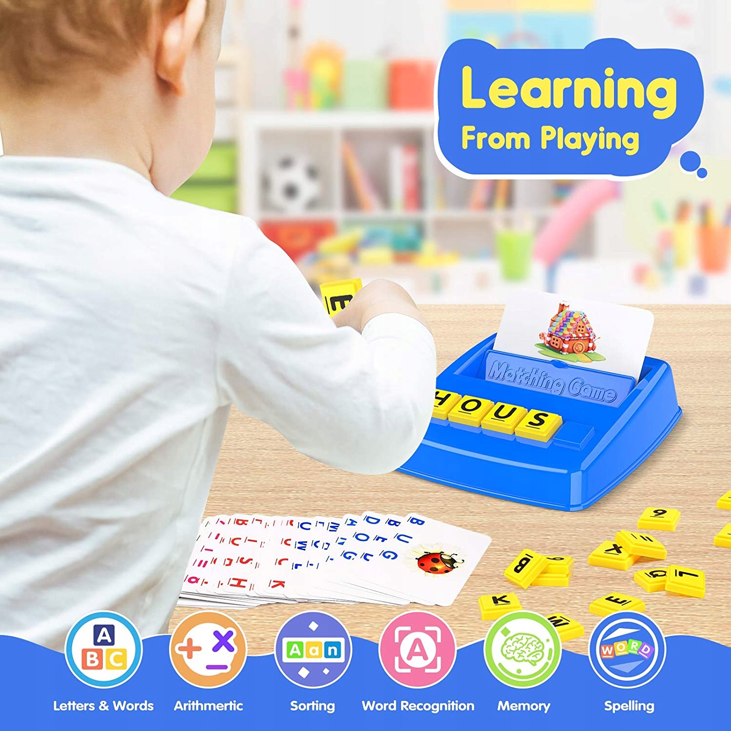 - Подарочный набор: игра для детей «Сопоставление букв» включает в себя 1 поднос, 75 фрагментов алфавита, 40 карточек с картинками (60 слов из 3, 4, 5 букв). .