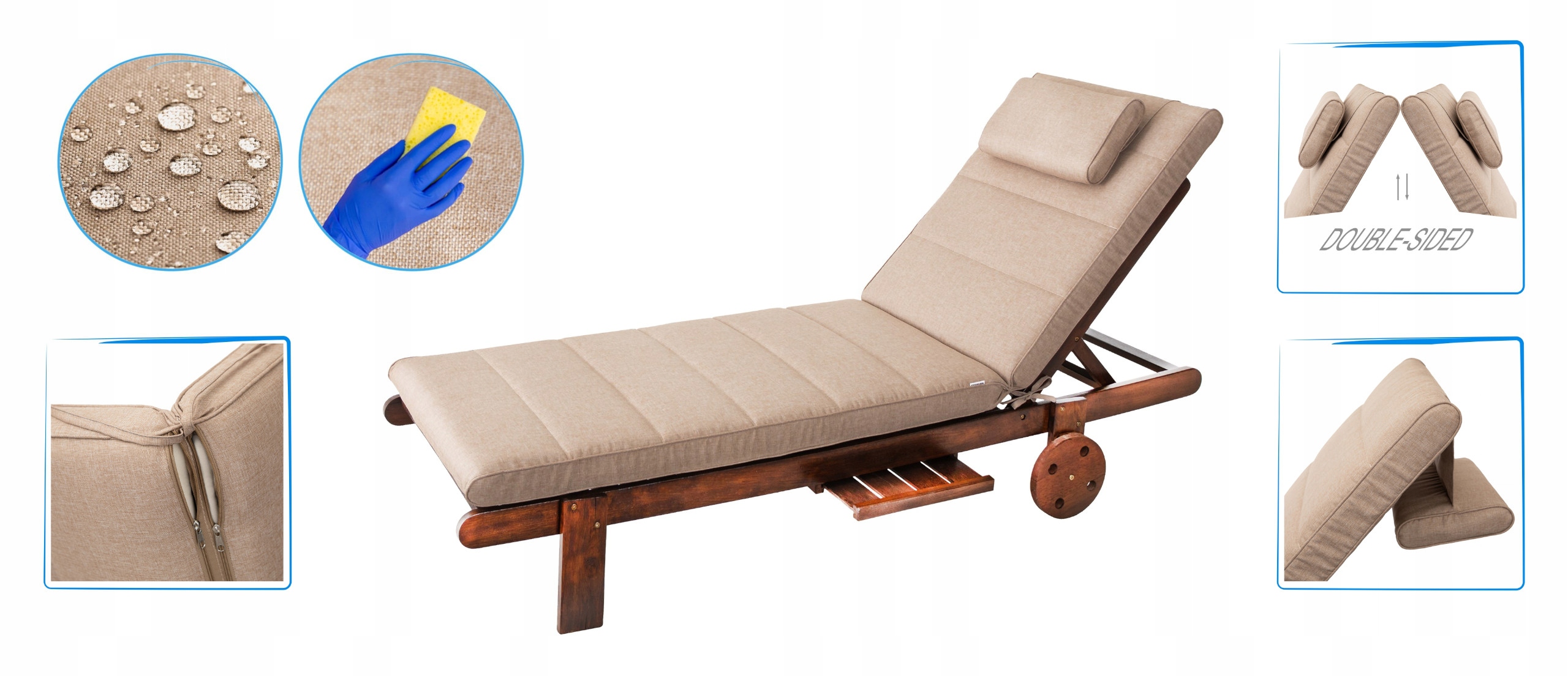 Materac poduszka ogrodowa na długi leżak z oparciem, wodoodporny 205x65cm