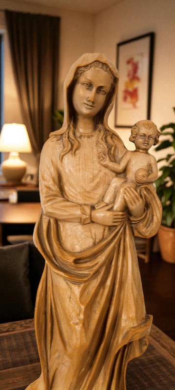 фигура сделана из смолы - очень хорошее состояние. h1> представляет святой Марию с ребенком Иисусом. Очень привлекательное внутреннее украшение или отличный случайный подарок. h1>