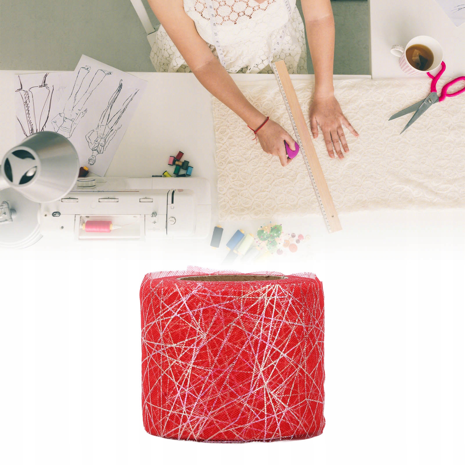 Красный тюль в рулонах, имитация паутины, тюль, сделай сам, материал для головного убора с бантом
