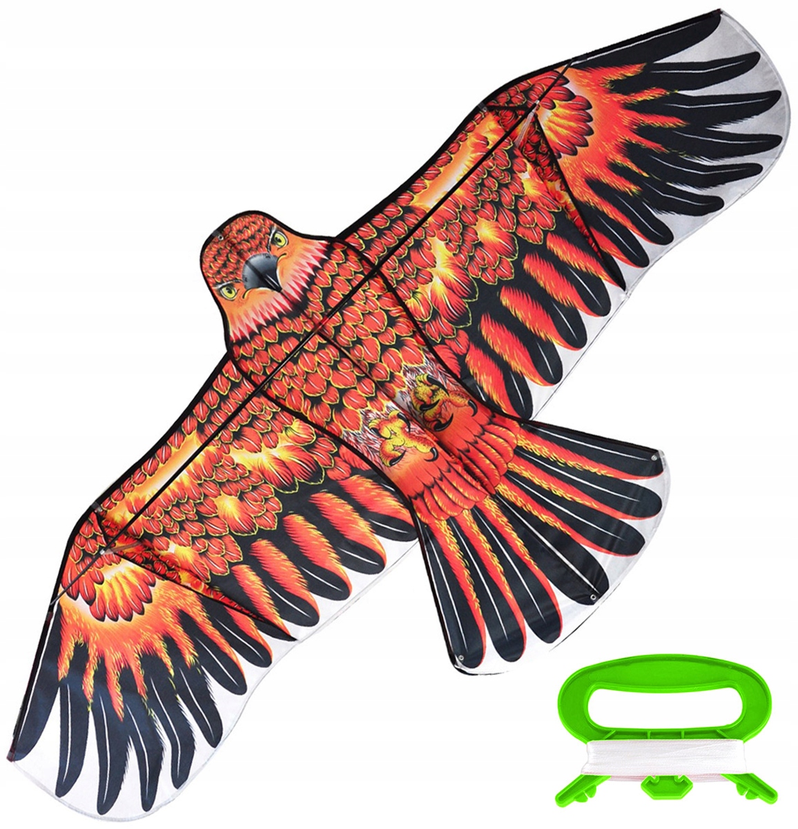 Огромный воздушный змей в форме орла. Оснащен длинным тросом, облегчающим управление. Идеальная игрушка для маленьких и больших детей. Это обеспечивает действительно длительные полеты в благоприятных условиях (соответствующий ветер). Яркие, насыщенные цвета делают воздушный змей действительно привлекательным. Изготовлен из легкого материала, дополнительно усилен каркасом, что обеспечивает долгую игру.