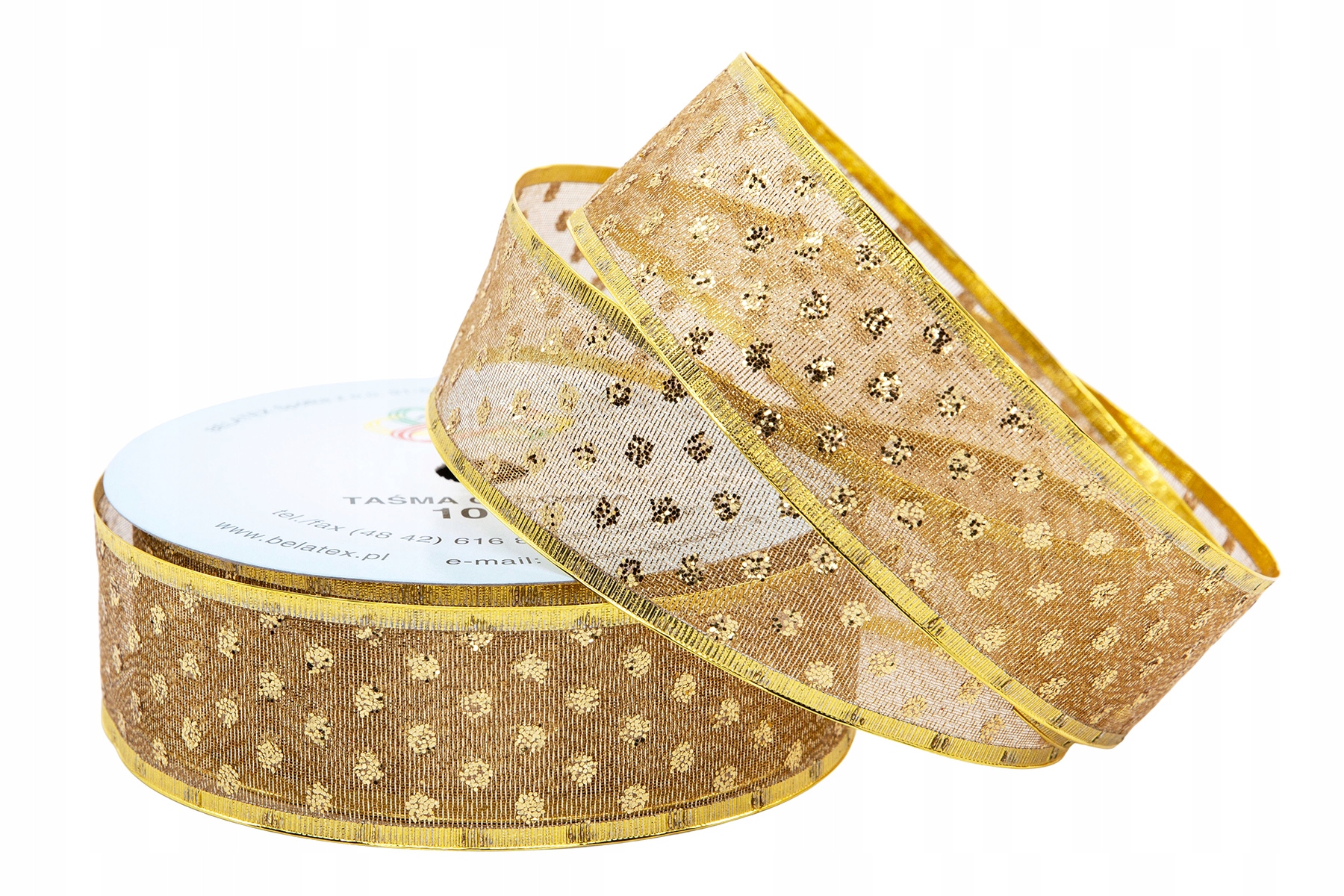 МАТЕРИАЛ ЛЕНТА С БЛЕСКНЫМИ ТОЧКАМИ ПРОВОЛОКА 4см/10м ЗОЛОТАЯ
