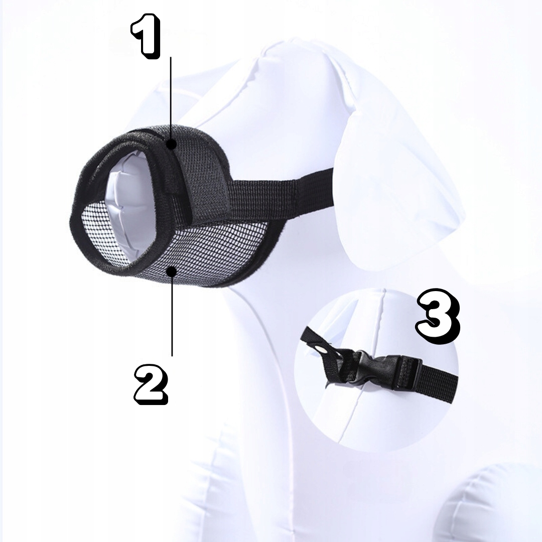 Морда, изготовленная из гибкого материала, адаптируется к форме кружки, не вызывая дискомфорта. Он не сжимает и не ограничивает дыхание. p>