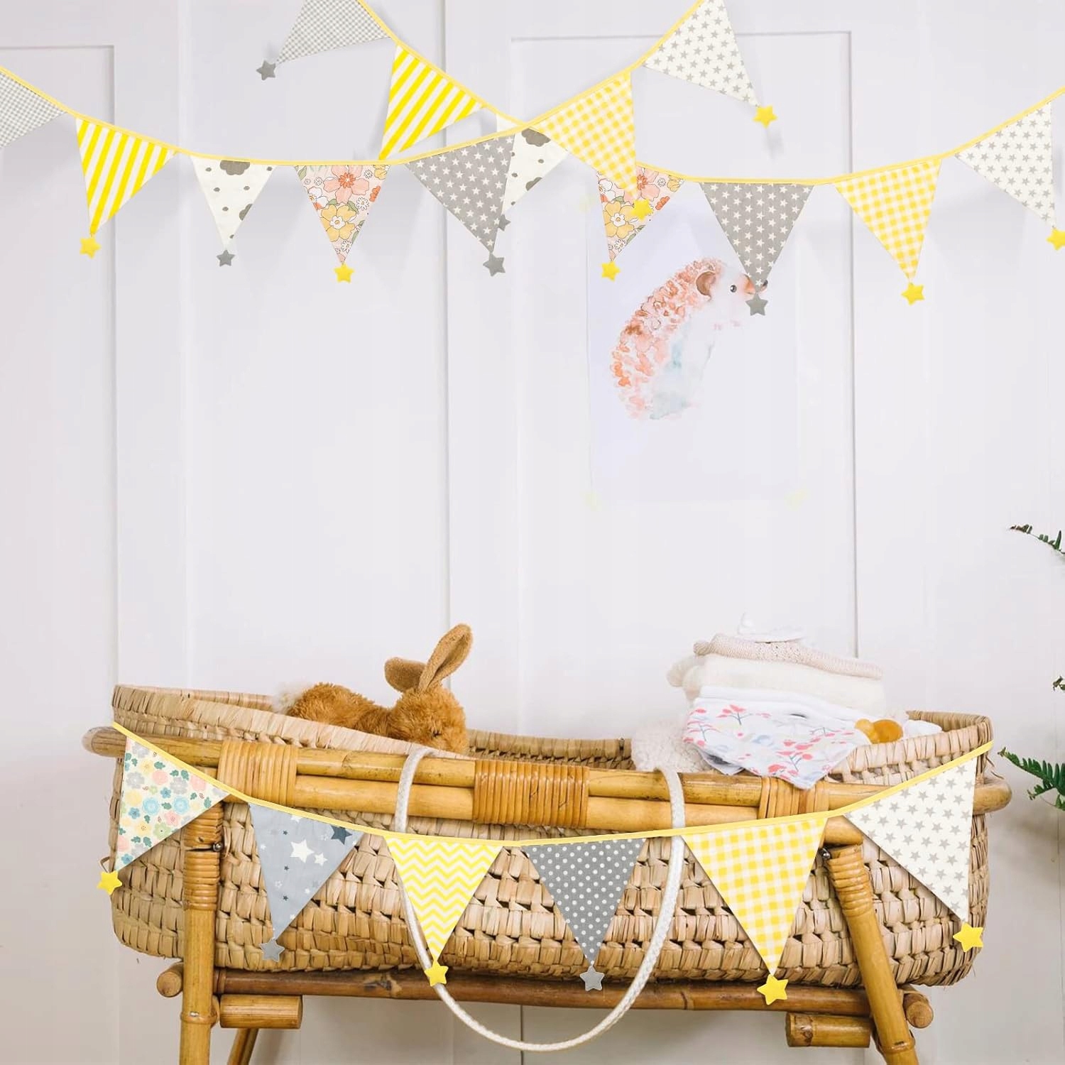 Восстановите детскую комнату или создайте сказочную атмосферу на вечеринке благодаря этой прекрасной, материаловой гирлянде с флагами и очаровательными звездами. Это отличное украшение, которое сочетает в себе функциональность, долговечность и эстетику - оно работает как внутри, так и снаружи, давая пространству теплую детскую атмосферу.