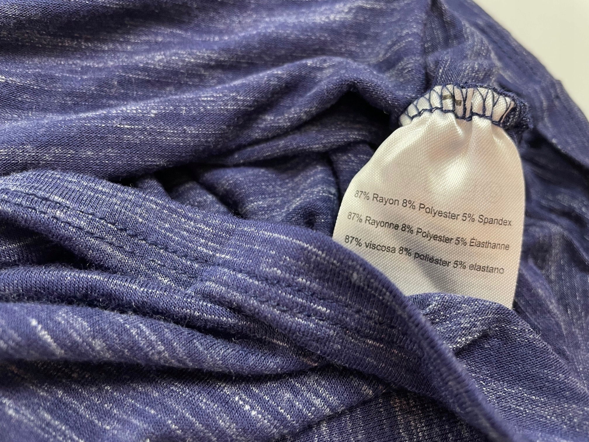- Женская блузка материнства. Блузка в цвете темно -синего меланжа. Он с короткими рукавами, имеет вырез в сыре. По бокам у него есть резиновые ленты, благодаря которой он идеально подходит на живот. Он был сделан из приятного, гибкого материала. Это соответствует фигуре и обеспечивает место для растущего живота. Отлично подходит для повседневных повседневных стилей. Rayon называется Viscose Silk: он великолепен, и нет склонности к складке