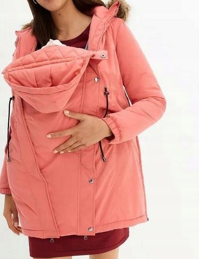 , закрепленной на молнии, с не совместимым капюшоном с мехом. Два кармана по бокам, по боковым швам, молнии, позволяющие расширить слой. Куртка для ношения во время беременности и после родов. На подкладках изолирован.