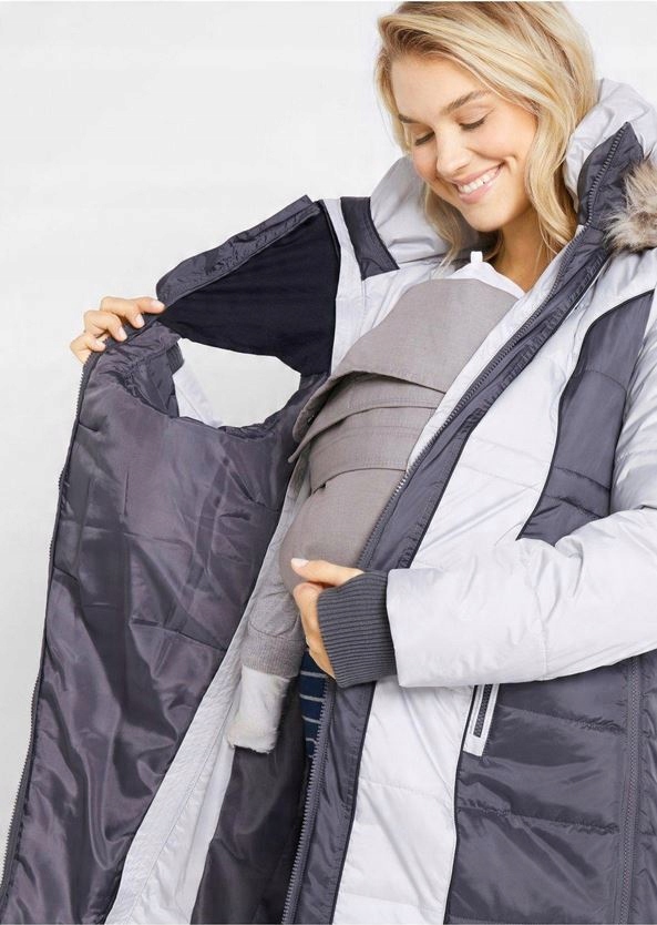 куртка с детской вставкой, прикрепленной к молнии, которую можно прикрепить/удалить спереди. Идеальная куртка для беременности/после доставки. Вставка не является ребенком.