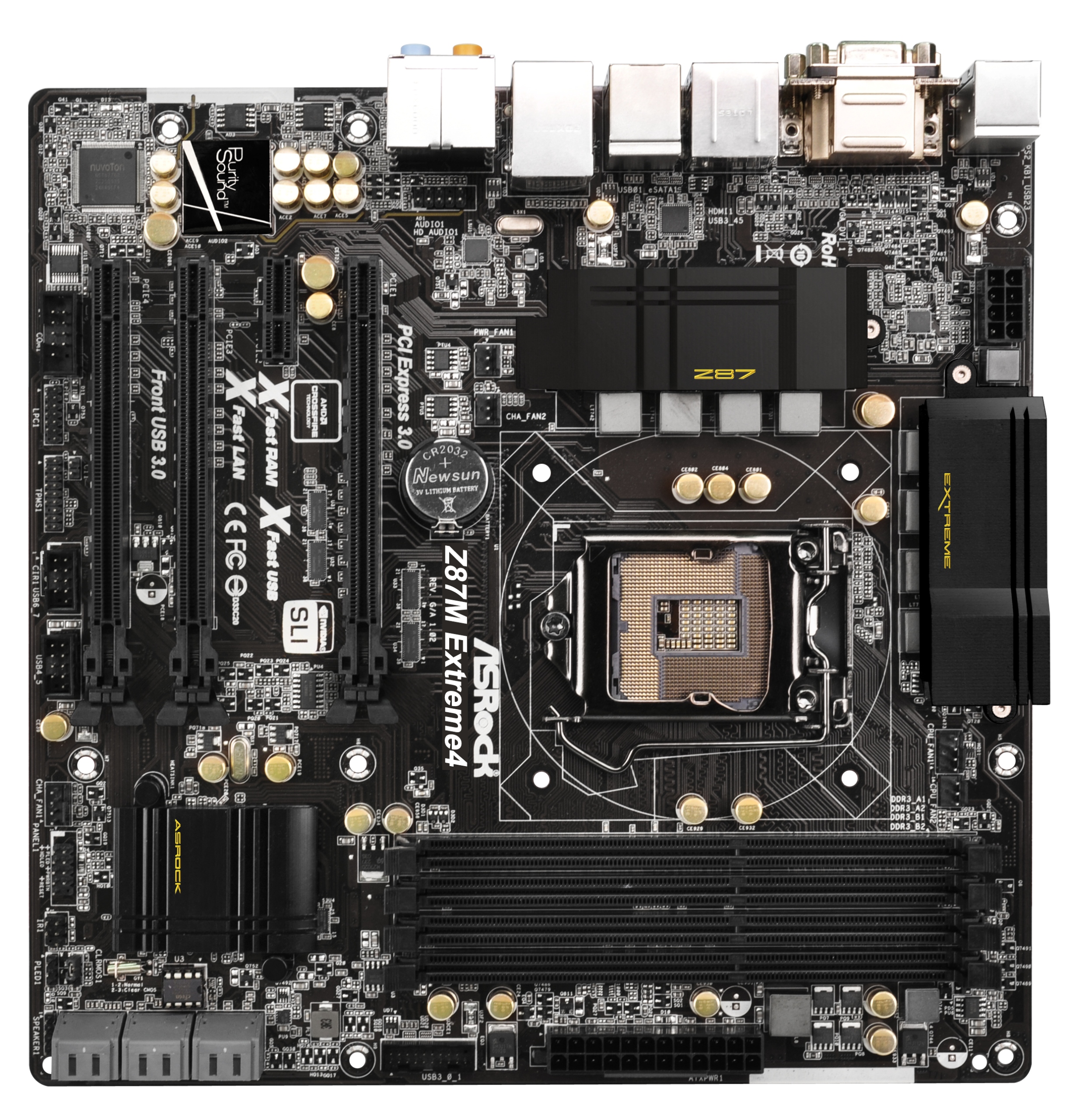 Asrock Z87M Extreme4. Производитель процессора: Intel, Сокет процессора: LGA 1150 (Socket H3), Процессор: Intel® Celeron®, Intel® Pentium®. Поддерживаемые типы памяти: DDR3-SDRAM, Максимальный объем памяти: 32 ГБ, Тип слота памяти: DIMM. Поддерживаемые интерфейсы жестких дисков: SATA, SATA II, SATA III, уровни Raid: 0, 1, 5, 10. Поддержка параллельной обработки: 2-Way CrossFireX, 2-Way SLI, 3-Way CrossFireX, Quad-GPU CrossFireX, Quad-GPU SLI, Память видеокарты графической подсистемы: 1792 МБ, графический адаптер семейства: Intel. Тип интерфейса Ethernet: Гигабитный Ethernet