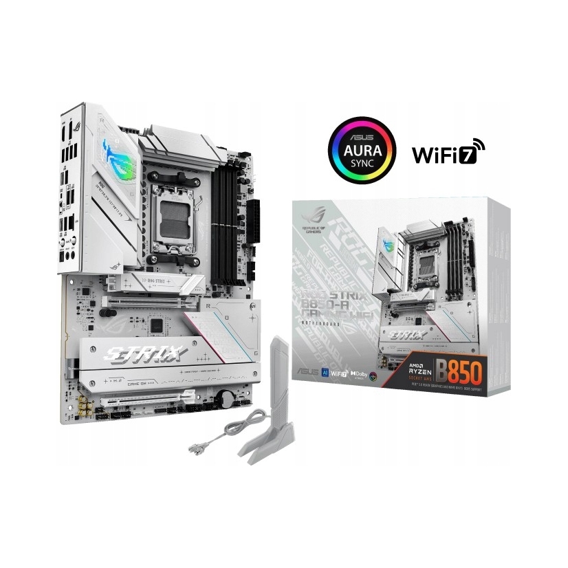 Игровой Wi-Fi Rog Strix B850-AОбновите свою систему с помощью игрового Wi-Fi Rog Strix B850-A. Эта материнская плата с гладкой белой печатной платой и процессорами AMD Ryzen серии 9000 обеспечивает производительность и возможности подключения, необходимые для продвинутых приложений искусственного интеллекта. Поддержка DDR5, все возможности PCIe 5.0, порт USB 20 Гбит/с и Wi-Fi 7 — это идеальное сочетание стиля и производительности.