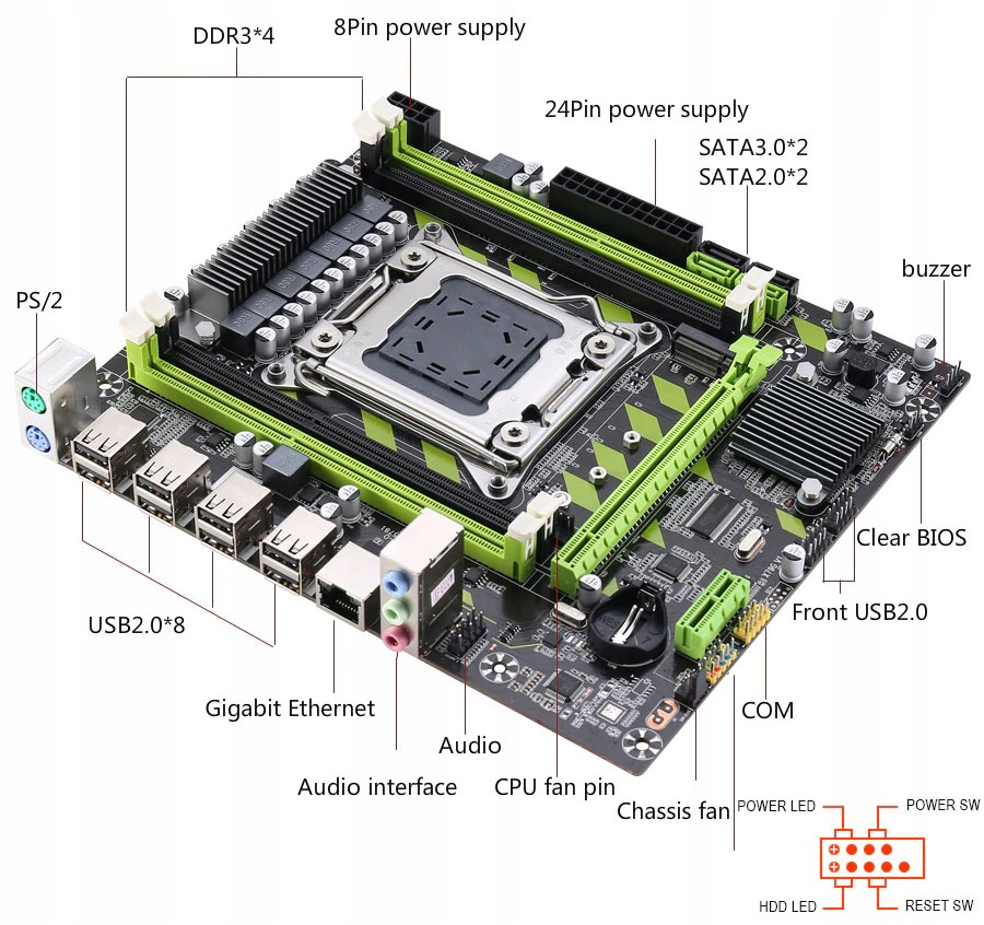 - Процессор: LGA 2011 ПРОБЕСА Настольные компьютеры) 4xddr3 Dimm Memory Socket. Четырехканальный четырехканальный сокет памяти, без ограничений на использование
