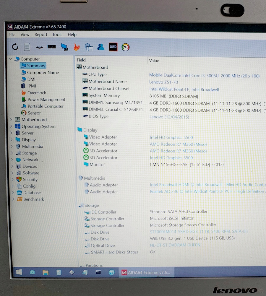 - процессор: Intel i3-5005M