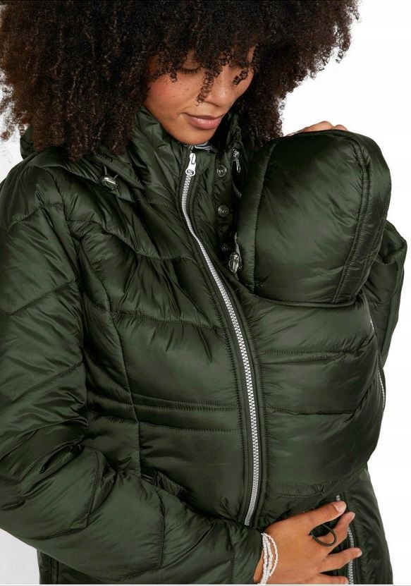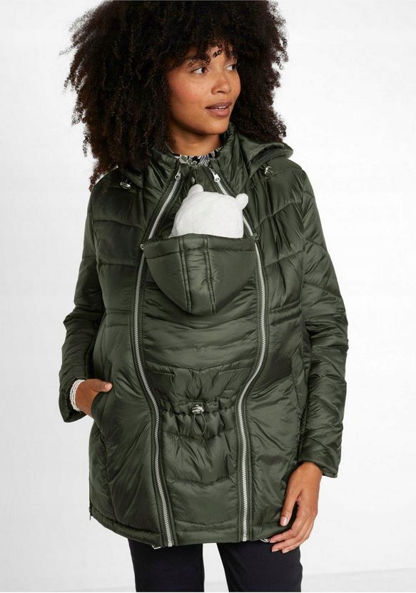 , закрепленная молнией, с неотразимым капюшоном с ремнями. Два кармана по бокам, по боковым швам, молнии, позволяющие расширить слой. Куртка для ношения во время беременности и после родов. На подкладках слегка изолированная, довольно переходная/легкая зима.