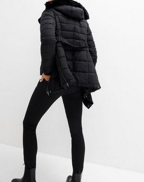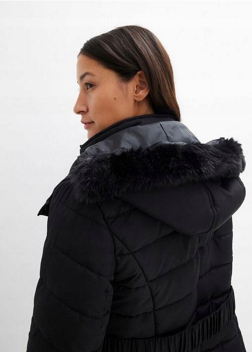 закрепленный молнией, с неотразимым капюшоном с мехом (мех отстранен). Два кармана по бокам, по боковым швам, молнии, позволяющие расширить слой. Куртка для ношения во время беременности и после родов. На подкладках слегка изолирован (Wadding). Рукава с вязаной манжетой. Стегано. С ремнем.