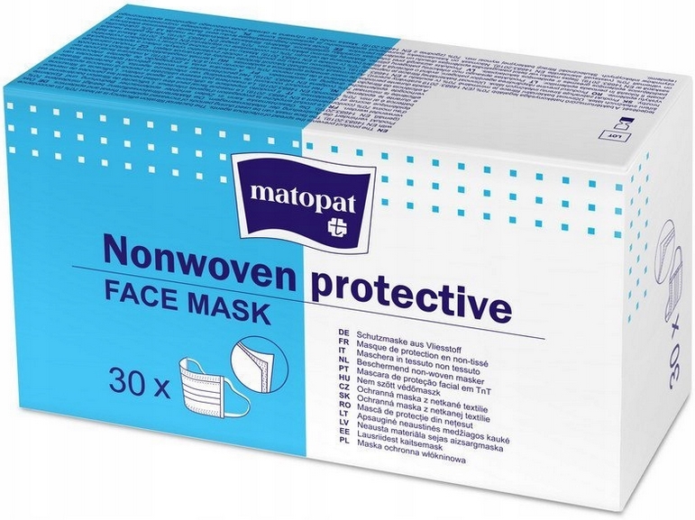 Маски 30 шт. MATOPAT 3-слойный одноразовый - мягкие, гибкие ручки, удобная картонная упаковка