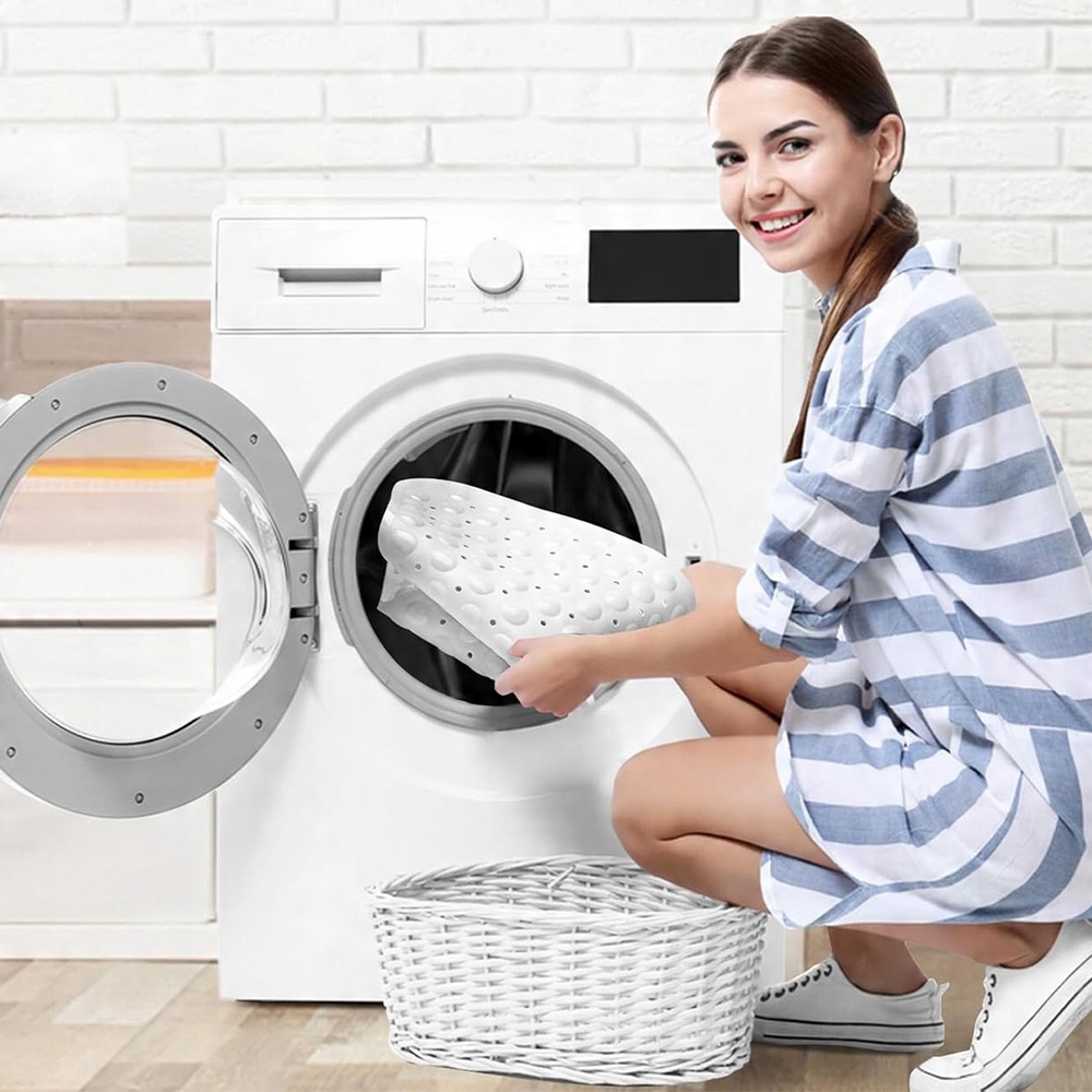 коврики для душа для внутреннего душа имеют дренажные отверстия в углу коврика для душа, которые могут быстро сливать пятна из воды и быстро высохнуть и уменьшить возможность облизывания. Очистка