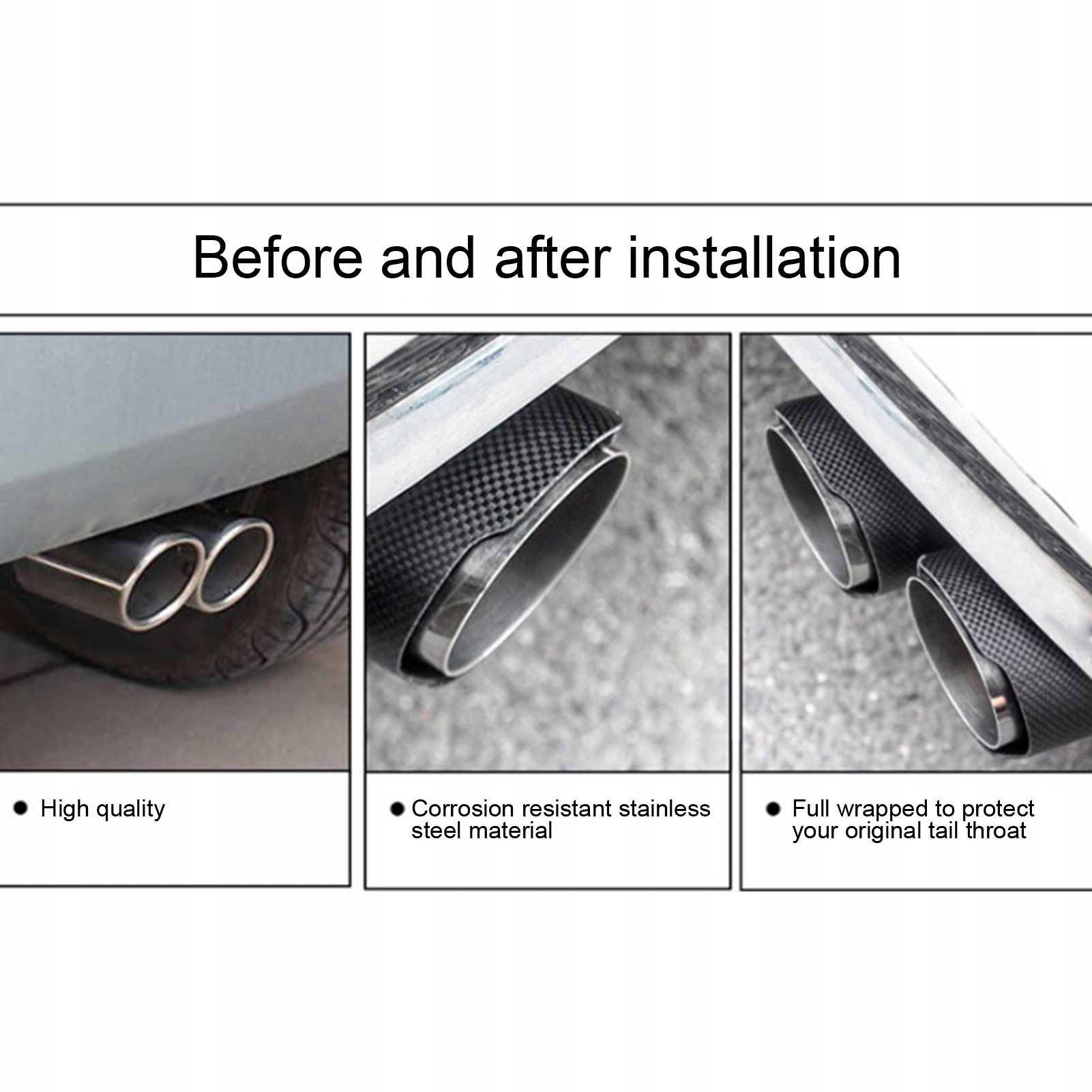 3. С хомутом эта задняя выхлопная труба подходит для выхлопной трубы автомобиля диаметром 2,3-2,4 дюйма.