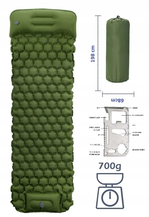 - Вместе с матрасом вы также получите карту выживания, которая, безусловно, будет полезна при походе в кемпинге. И все это еще не все, потому что в нашей новой модели 2022 года мы также решили добавить насос, который поможет вам использовать наш продукт