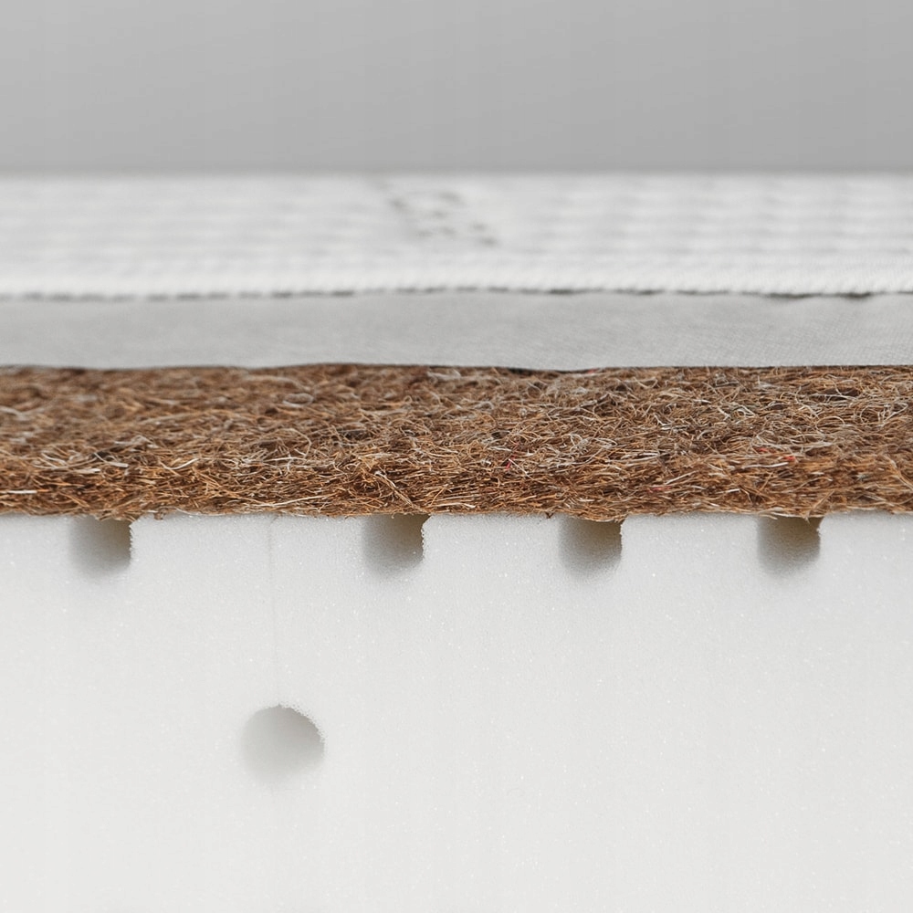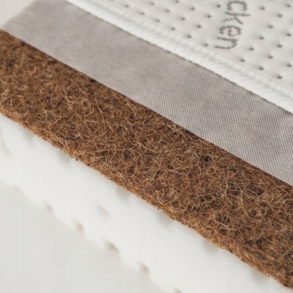 В нашем матрасе мы использовали натуральные кокосовые волокна высочайшего качества. Эти волокна характеризуются хорошими вентиляционными свойствами и обеспечивают жёсткую спальную поверхность. Вентиляционные каналы, расположенные под кокосовым ковриком, усиливают приток воздуха.