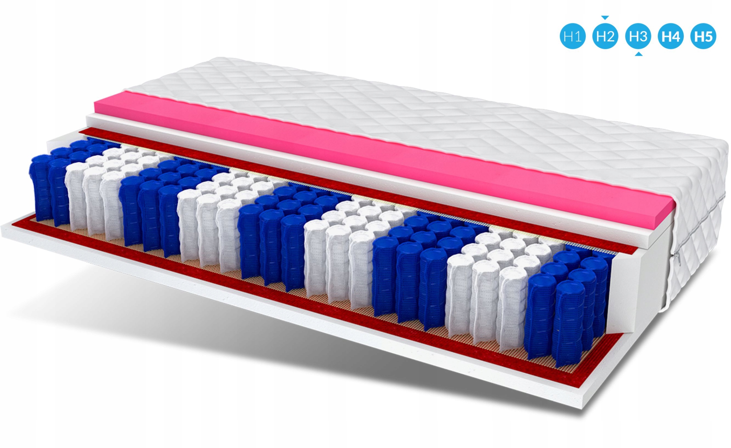 Независимая работа пружин исключает эффект прогиба большой поверхности матраса при давлении на его небольшую поверхность. Благодаря зонам разной жесткости он обеспечивает эргономичное положение тела ребенка во время отдыха, устраняя боли в позвоночнике и гарантируя комфортный отдых каждую ночь.