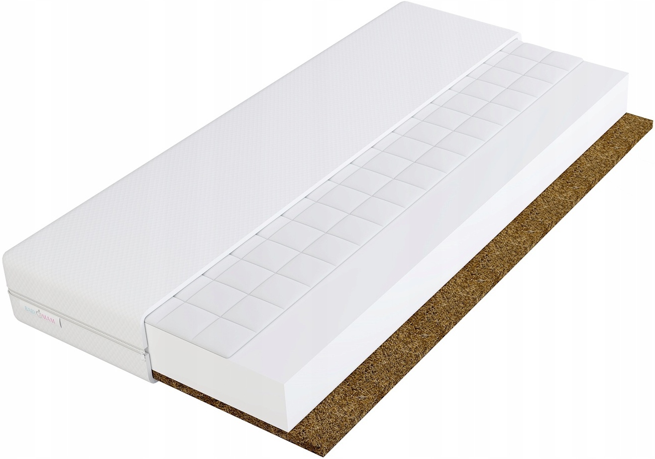 Он играет важную роль в первые месяцы жизни ребенка, поскольку представляет собой слегка жесткий слой, идеально правильно поддерживающий тело ребенка. Натуральный кокос волокна, препятствующие развитию грибков, плесени и проницаемые для воздуха. Использование кокосовых матов позволяет придать ему оптимальную жесткость.