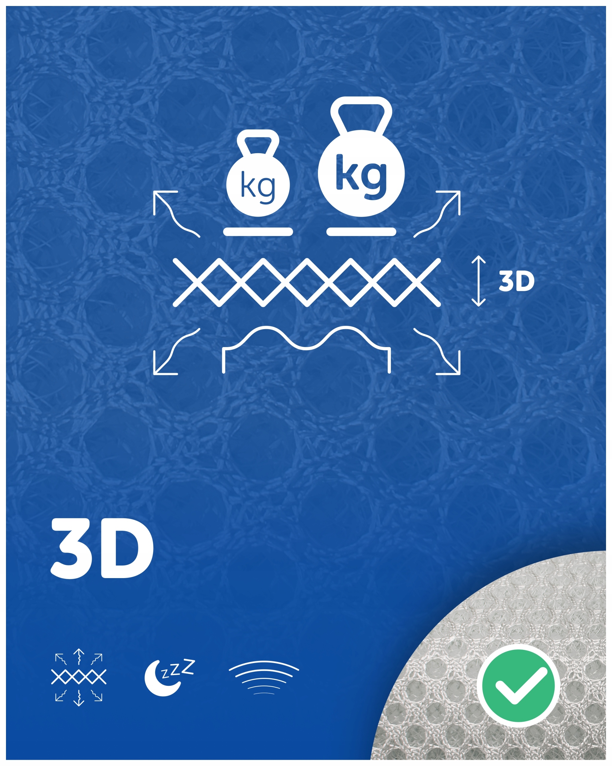 В конструкции используется 3D-разделительная сетка, которая обеспечивает постоянный приток воздуха и помогает поддерживать сухой, приятный микроклимат для сна.
