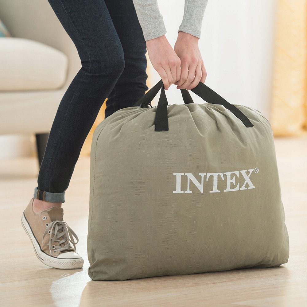 Надуваемый, велюрный матрас из последней коллекции Prime Comfort Company был сделан в соответствии с инновационной технологией Dura-Beam, запатентованной Intex. Гарантия Большая прочность продукта и увеличивает комфорт использования матраса. Это обеспечивает отличное удобство, сидя и вставая благодаря большой высоте - 51 см. Как материал) увеличивает толщину и делает матрас современным и приятен на ощущение > В наборе включает в себя удобную сумку, которая позволит безопасно хранить и транспортировать матрас.