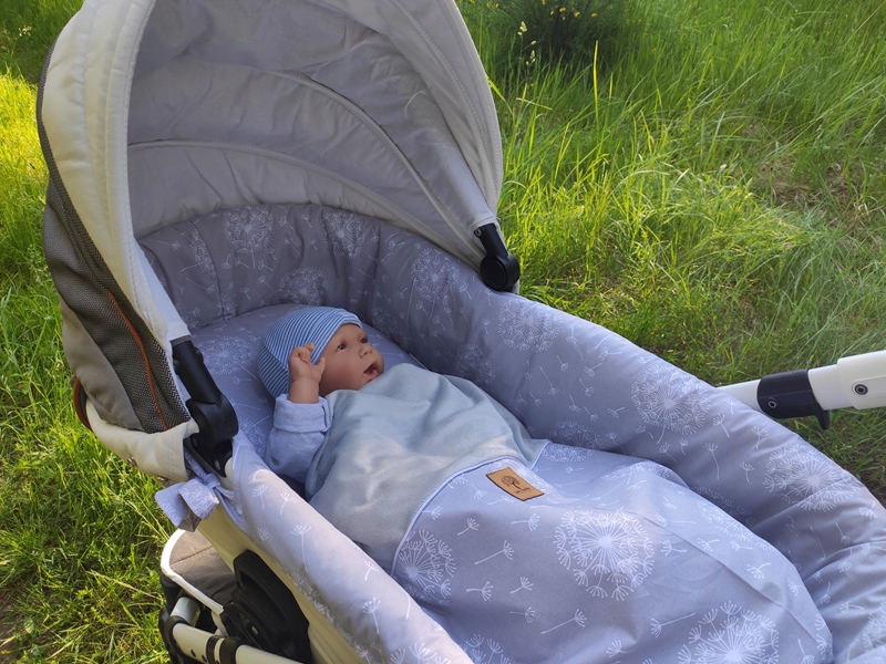 - Установленная экструзия возможна благодаря сшитую в сильной жевательной резинке внутри вставки. Вы растягиваете целое по своему усмотрению с помощью шин, которые образуют декоративные луки по обе стороны коляски.