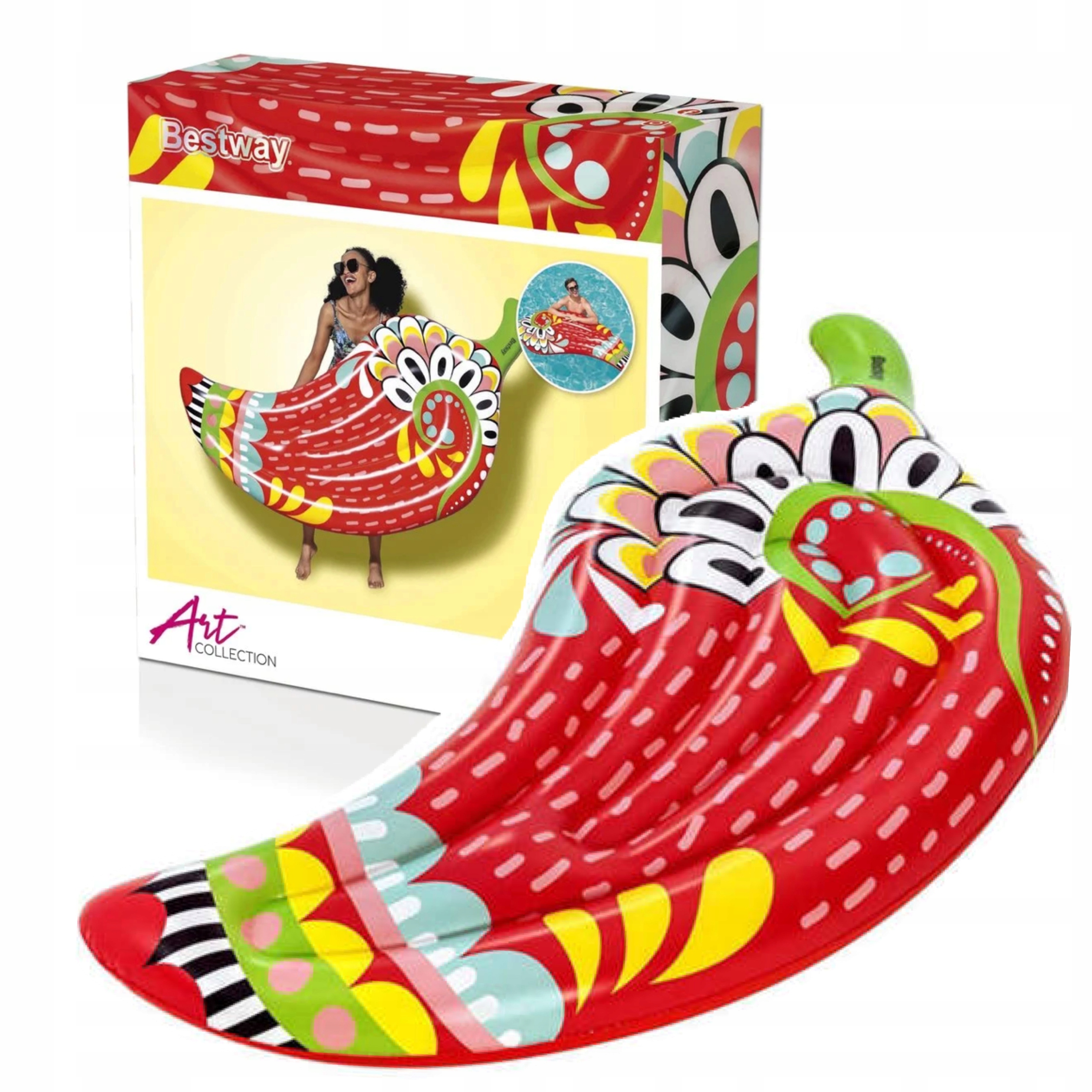 Этим летом разнообразить развлечения в бассейне можно благодаря Bestway® Flirty Fiesta™. Яркая графика этого поплавка создаст атмосферу кокетливого веселья и сделает плескание с семьей и друзьями в бассейне, озере или на пляже еще более приятным. Встроенный предохранительный клапан контролирует давление воздуха, что позволяет легко надувать, сдувать и хранить. Возьмите этот уникальный художественный матрас в форме сочного перца на следующую вечеринку и станьте центром разговоров этим летом с Flirty Fiesta Pepper! Устойчивость матраса обеспечивается использованием продольных воздушных камер, которые обеспечивают пловцу отличную плавучесть. Благодаря своей легкости надувной матрас пригодится как в бассейне, так и в путешествии. Несомненным преимуществом матраса является то, что он способствует физической активности. Положите его в сумку и приготовьтесь к множеству солнечных дней, которые вы запомните, куда бы вас ни привели летние приключения.