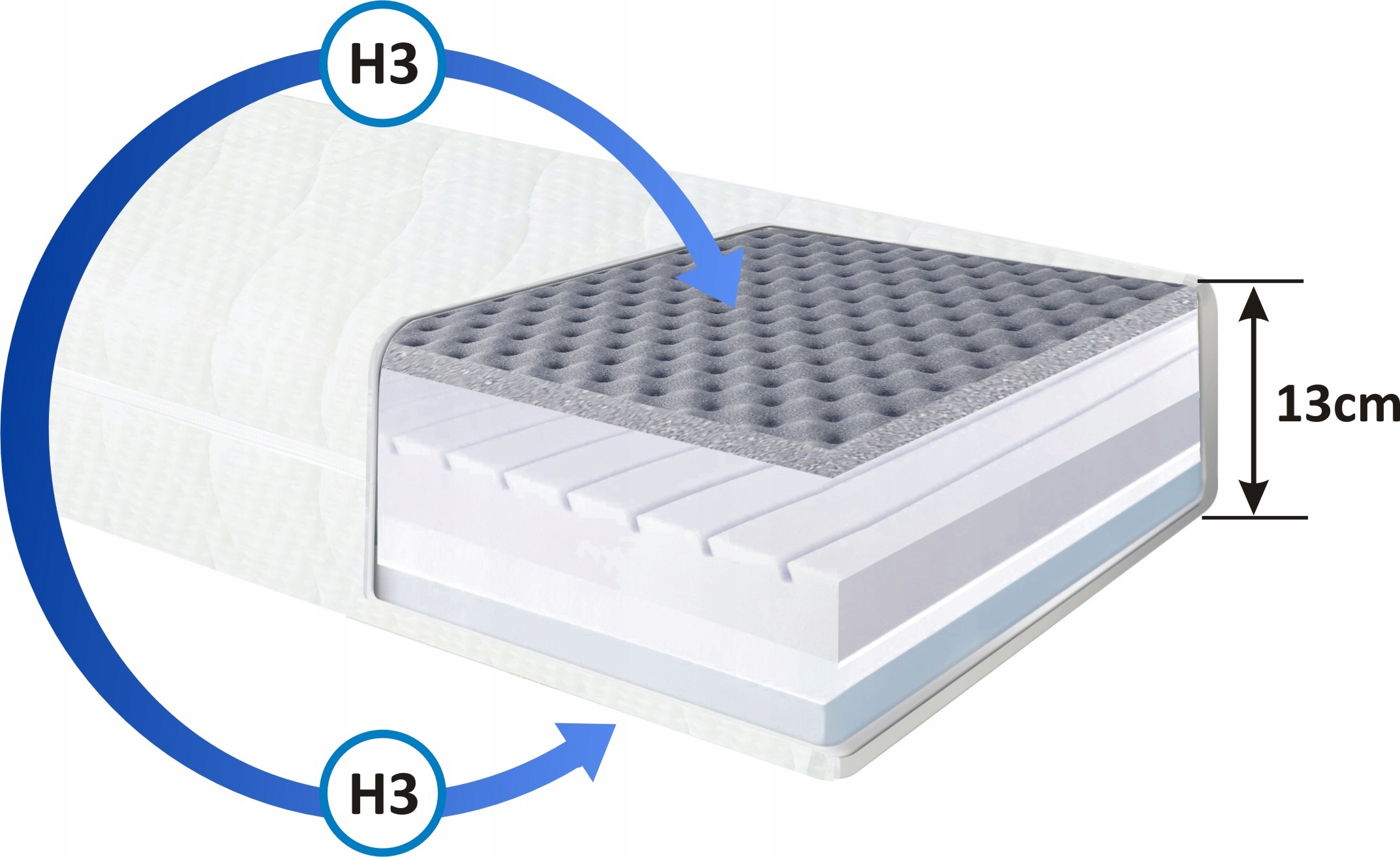 • Высокое качество матраса обеспечивает очень хорошую поддержку позвоночника > и здоровый, спокойный сон