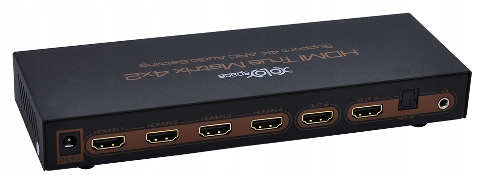 XOLORSpace ® HDMI 4x2 Matrix может перенаправлять четыре входа на два разных выхода (например, телевизор, проектор, монитор). Работает в параллельном режиме. Выходы 1 и 2 можно подключить к входу 1. Дополнительно можно включить функцию передачи аудиосигнала на аналоговый аудиовыход. Переключение входных сигналов на выходы осуществляется с помощью пульта ДУ или кнопок на устройстве. Текущее состояние отображается тонкими светодиодами. Интегрированный усилитель обеспечивает захватывающее дух изображение. Кроме того, аудиосигнал может воспроизводиться параллельно через цифровой оптический разъем Toslink и мини-разъем 3,5 мм. Встроенный аудиоконтроллер EDID позволяет вам определить формат вывода звука для разъема SPDIF. Вы можете установить звук 2.0 или 5.1