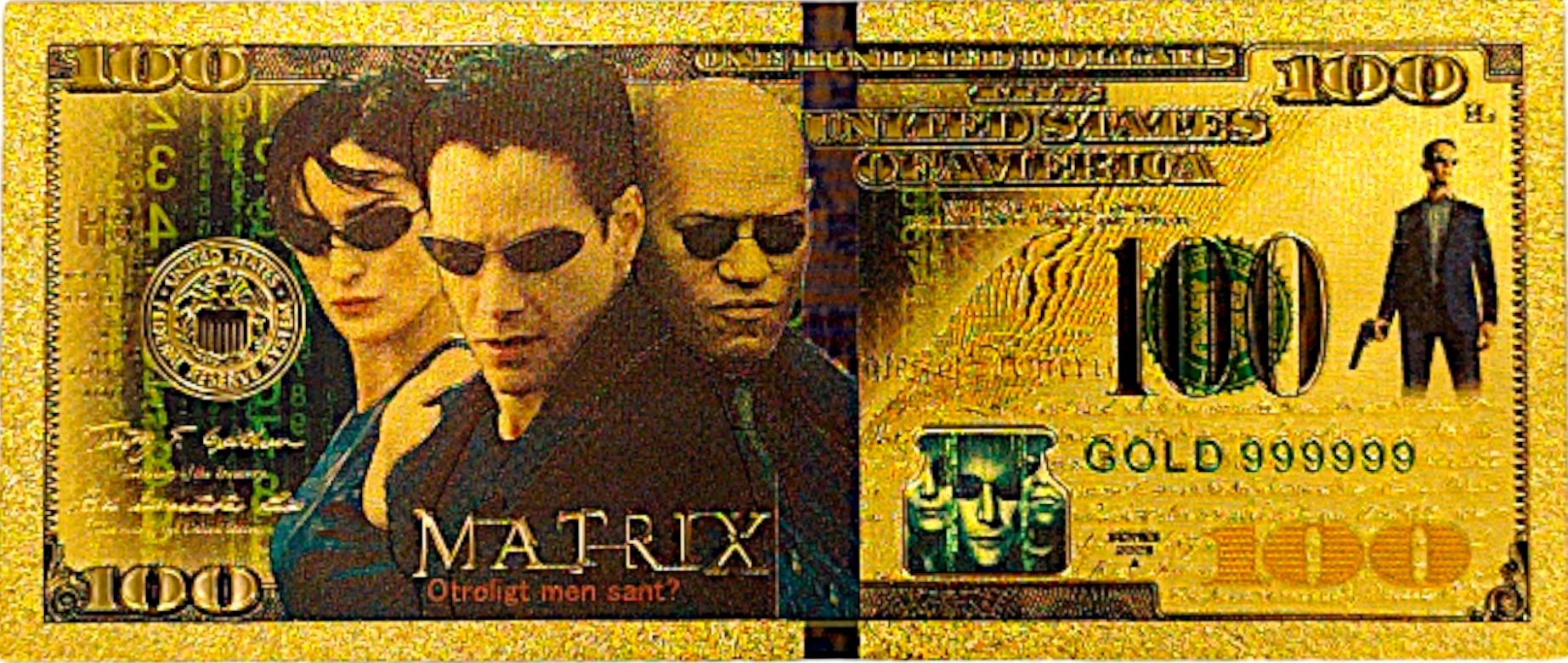 Красивая коллекционная банкнота с мотивом из фильмов "Матрица".