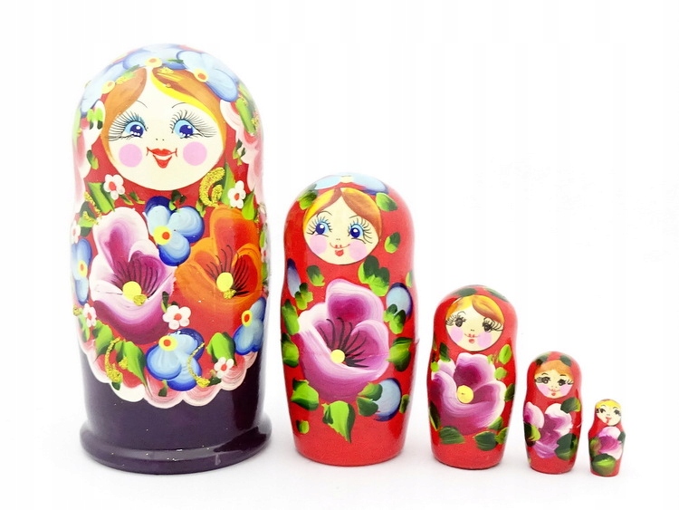Состоит из пяти кукол, помещенных одна в другую.